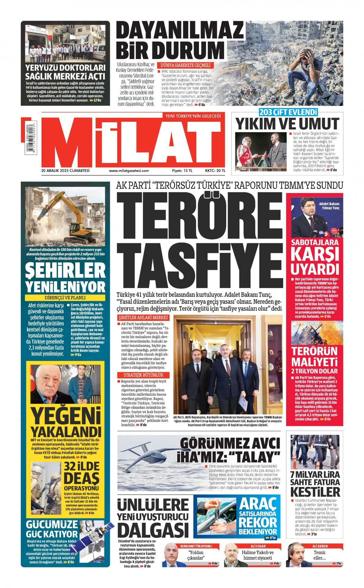Milat Gazetesi 20 Aralık 2025 Günü Manşeti