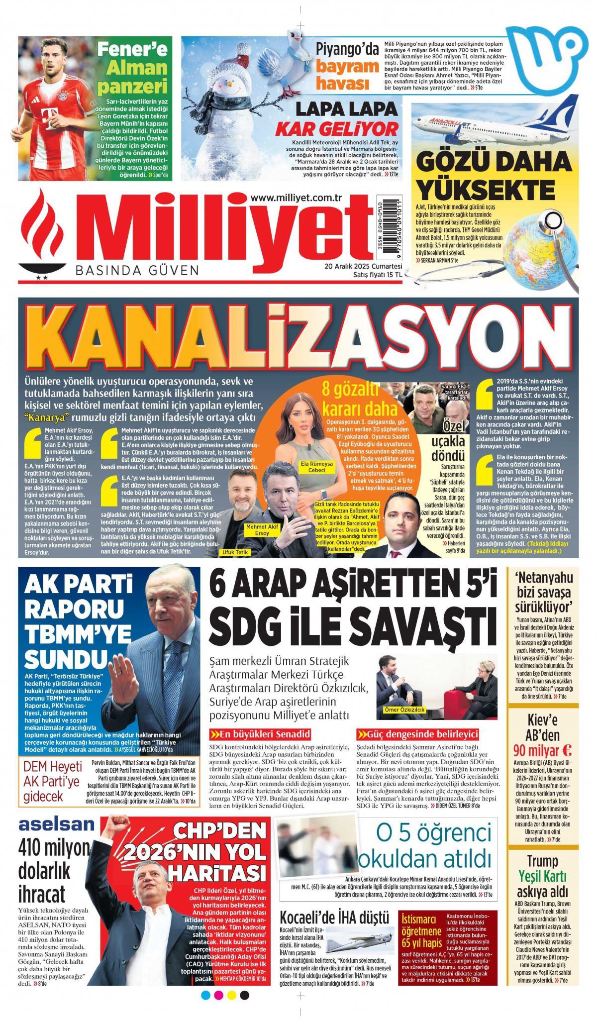 Milliyet Gazetesi 20 Aralık 2025 Günü Manşeti